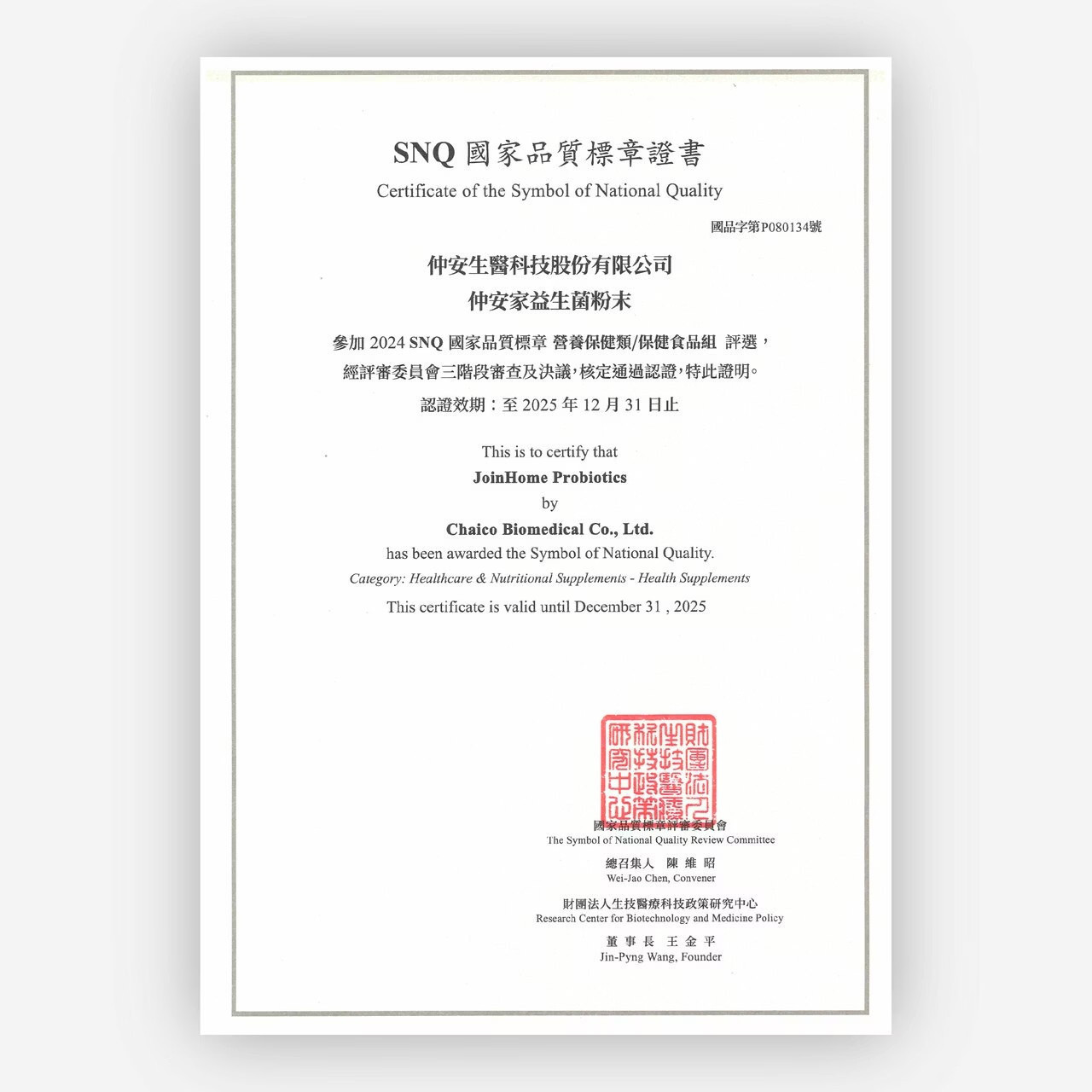⇨榮獲 SNQ 國家品質標章認證,國品字第P080134號