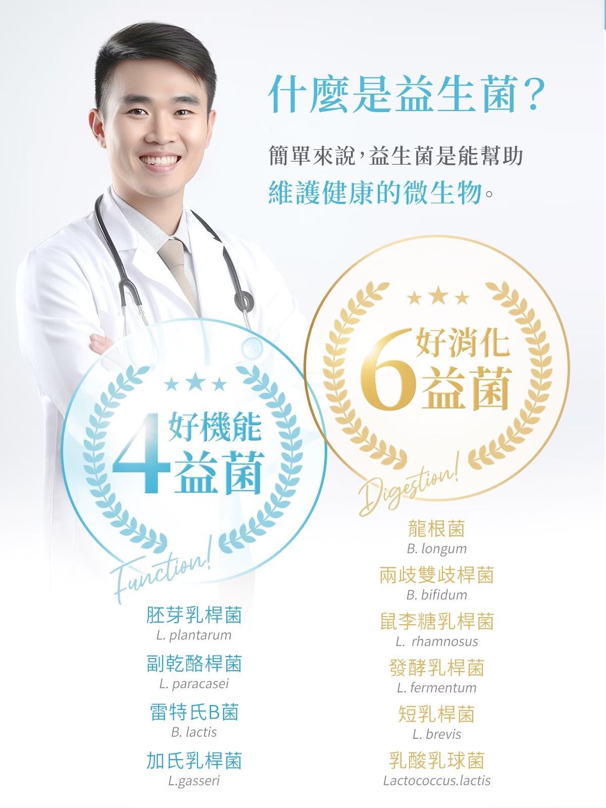 ⇨嚴選 十大人體原生及植物菌種,4好機能益菌,6好消化益菌