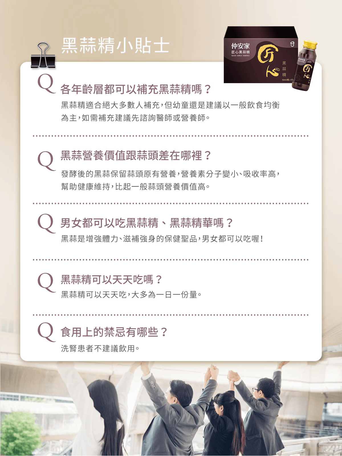 - 成分:水、黑蒜、黑糖、生薑萃取液、薑黃萃取液