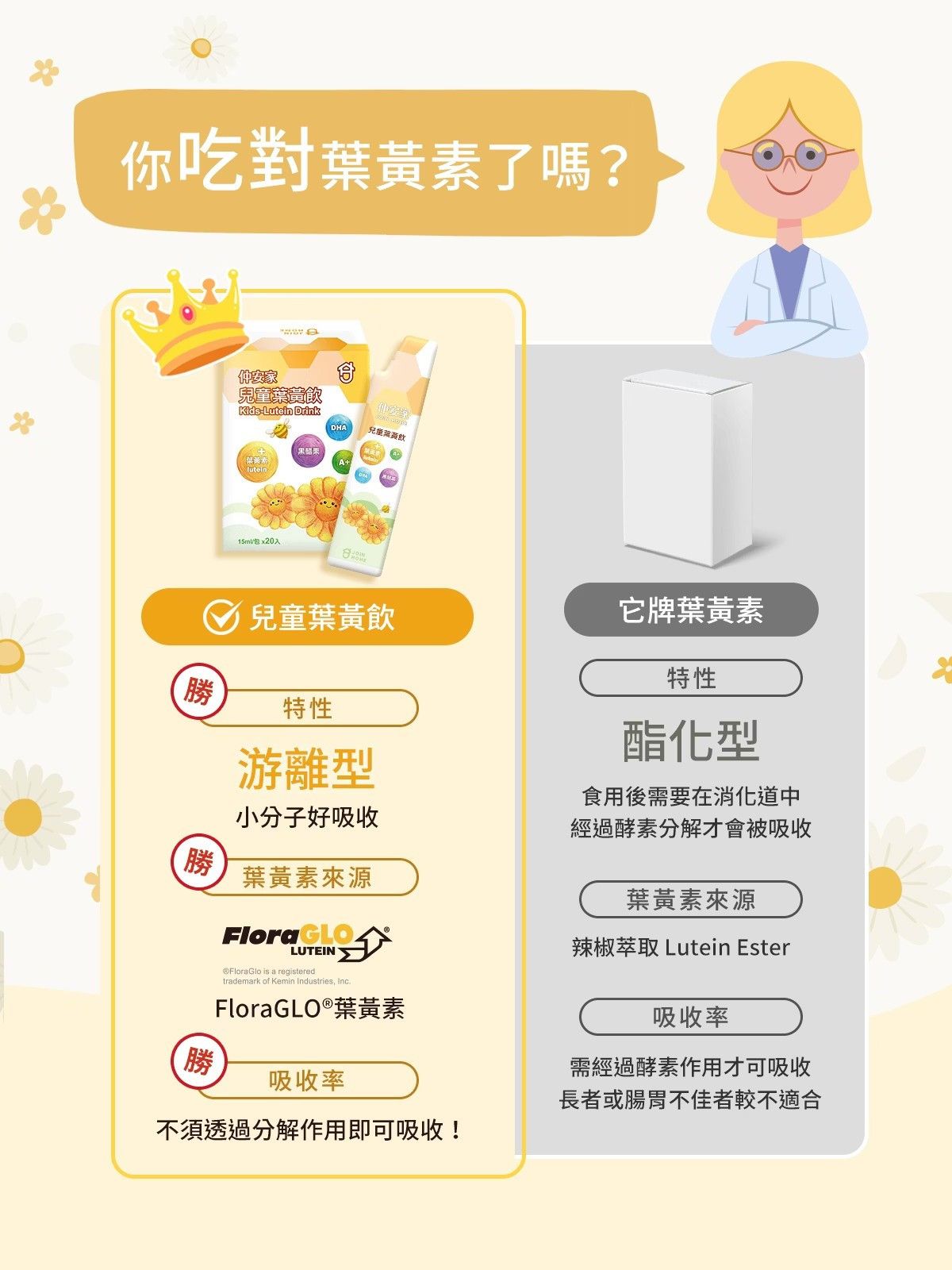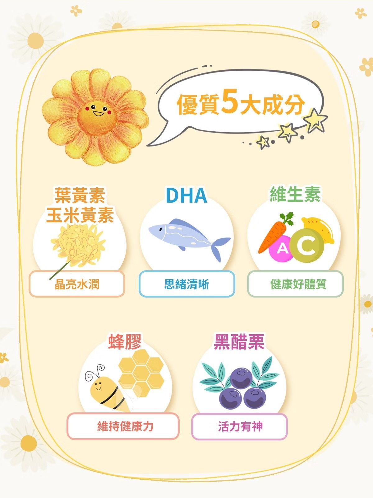 ⇨FloraGLO®金盞花+DHA+維生素A、C+黑醋栗+蜂膠